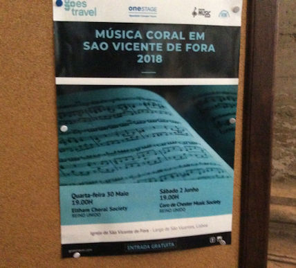 Our tenth European concert tour; 29th May to 1st June 2018, staying in the Hotel Roma in Lisbon.